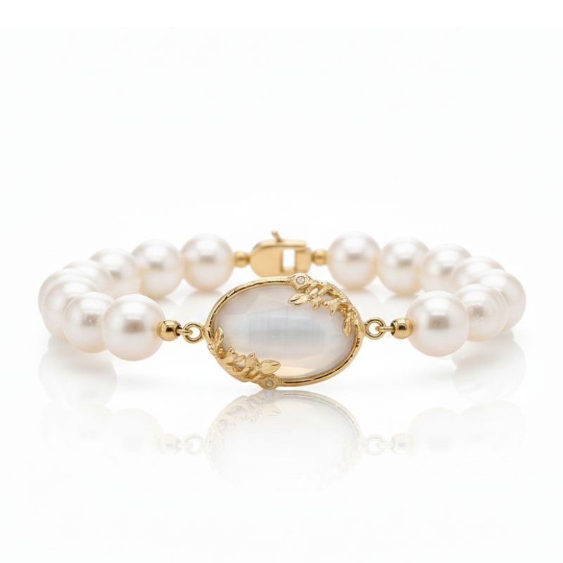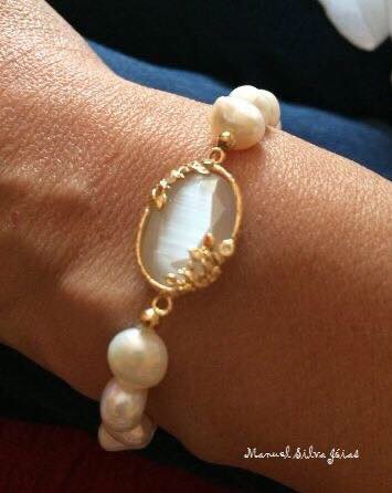 Pulseira de pérolas com pedra hidrotermal em prata dourada ou prateada. Tenho o conjunto completo e com outras cores de pedras.