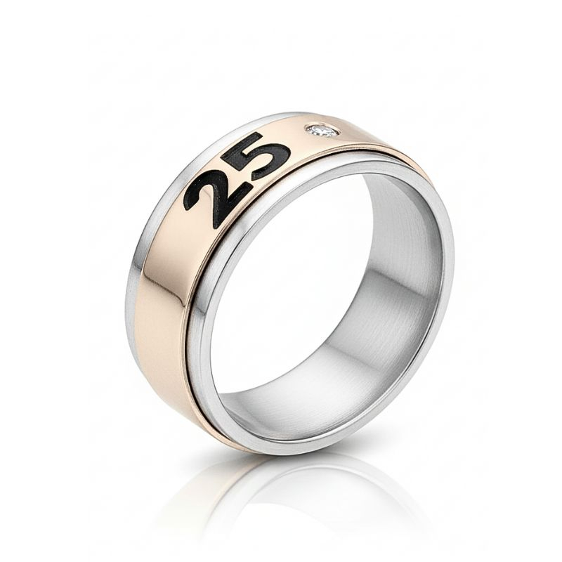 Aliança em ouro e prata personalizada.