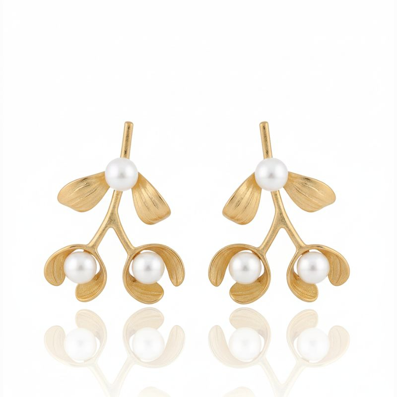 Brincos em prata dourada ou prateada com pérolas.