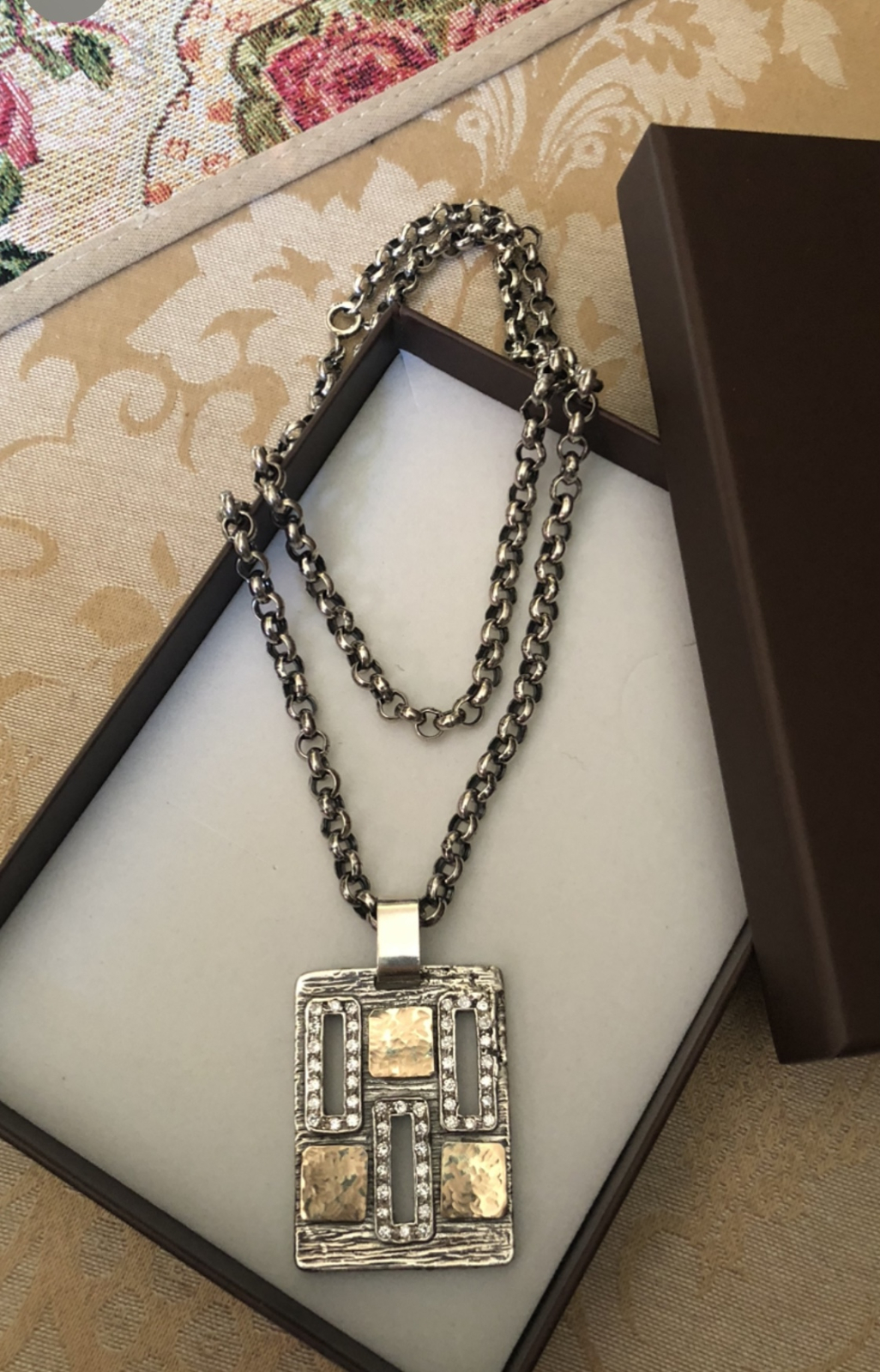 Colar em ouro e prata com zircónias. Tenho o conjunto completo.
