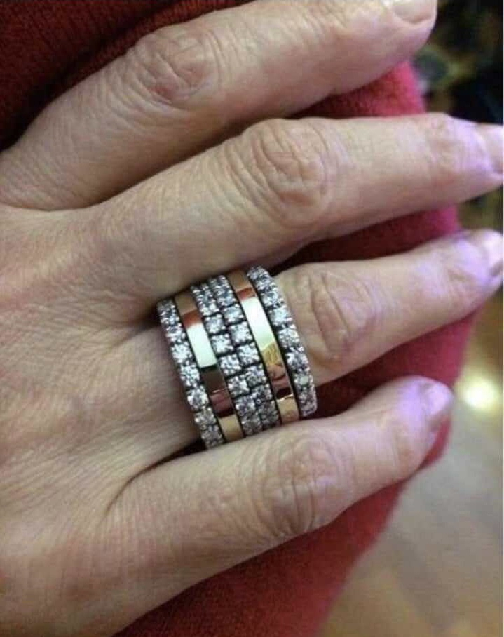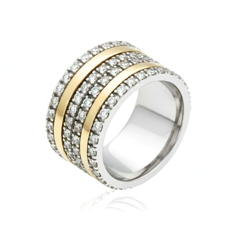 Aliança em ouro e prata com zircónias.