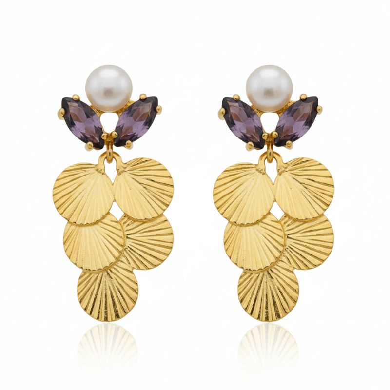Brincos com pérolas e pedras fumé em prata dourada ou prateada.