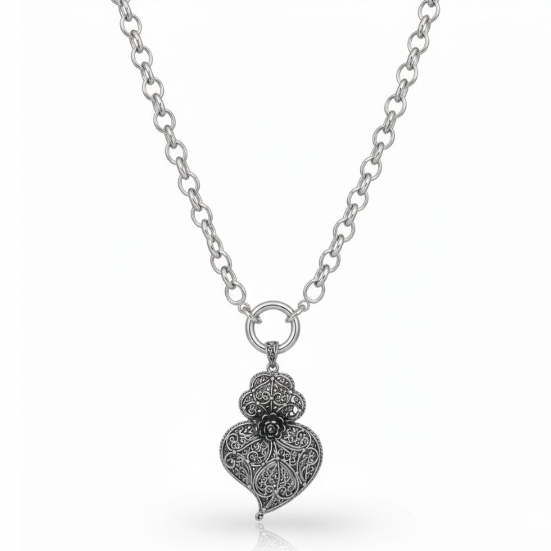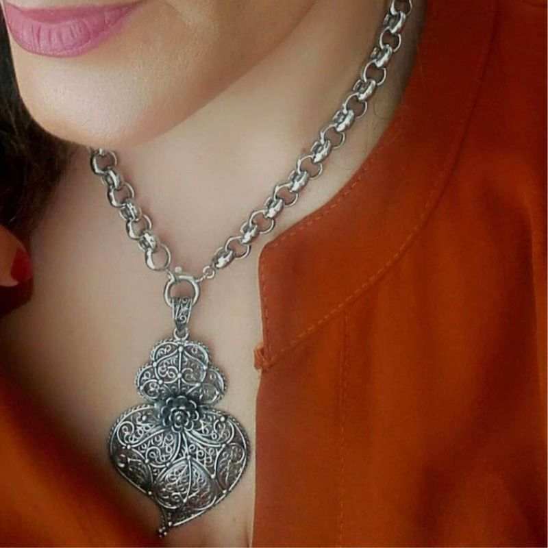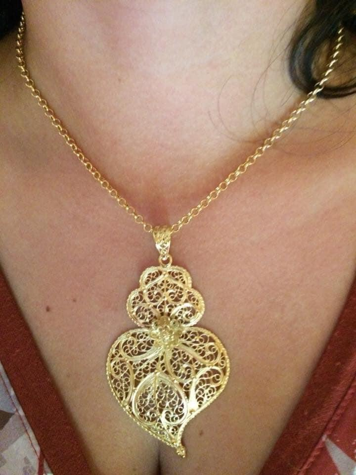 Coração de Viana em filigrana em prata dourada ou prateada.