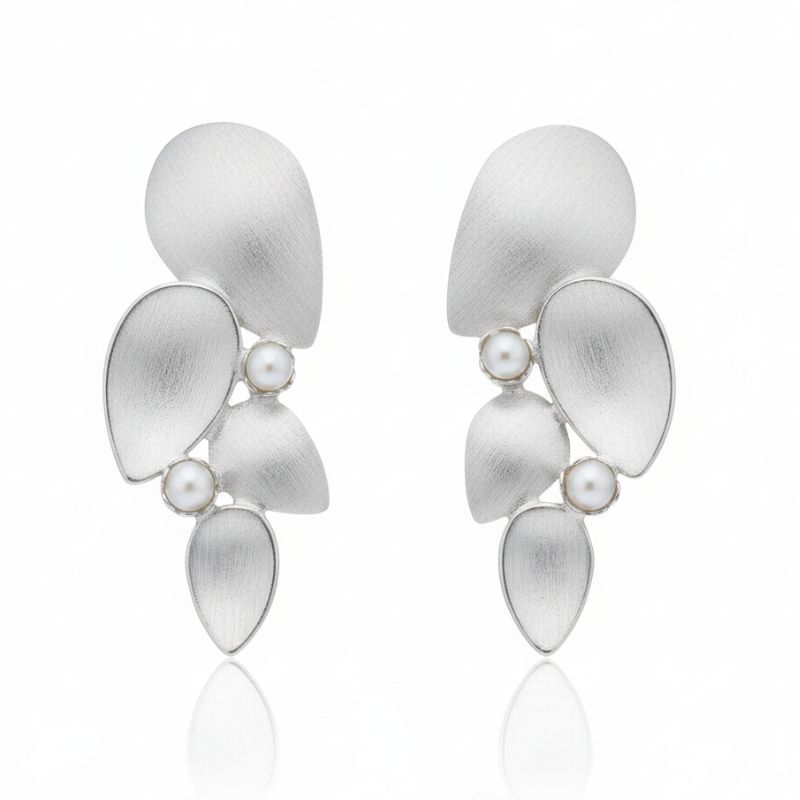 Brincos em prata dourada ou prateada com pérolas.