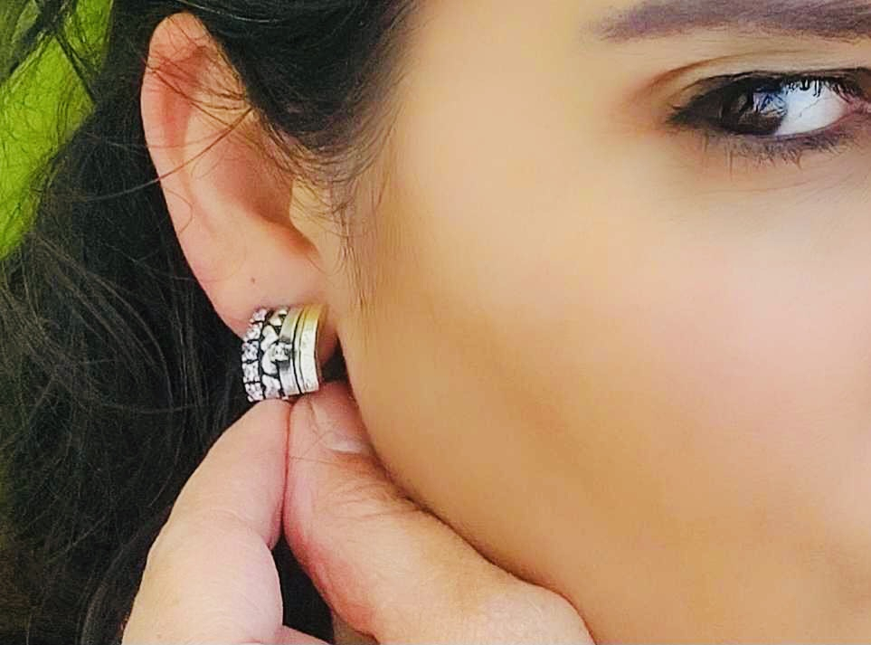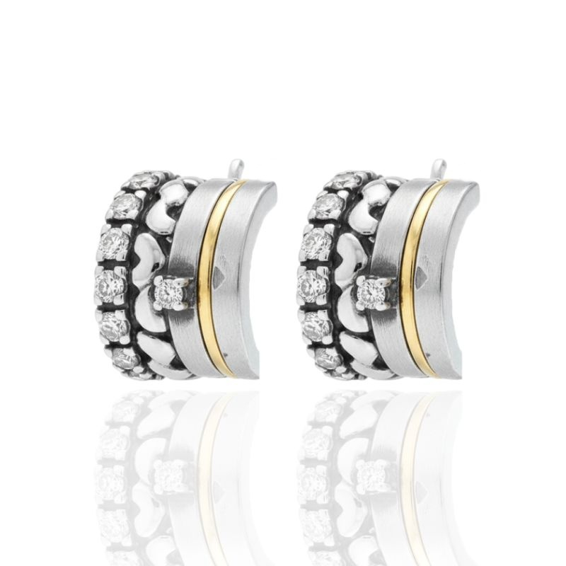 Brincos em ouro e prata com zircónias. Tenho a aliança de conjunto.