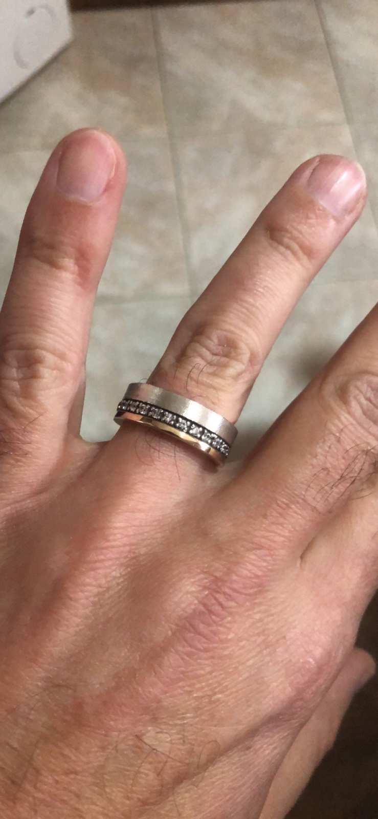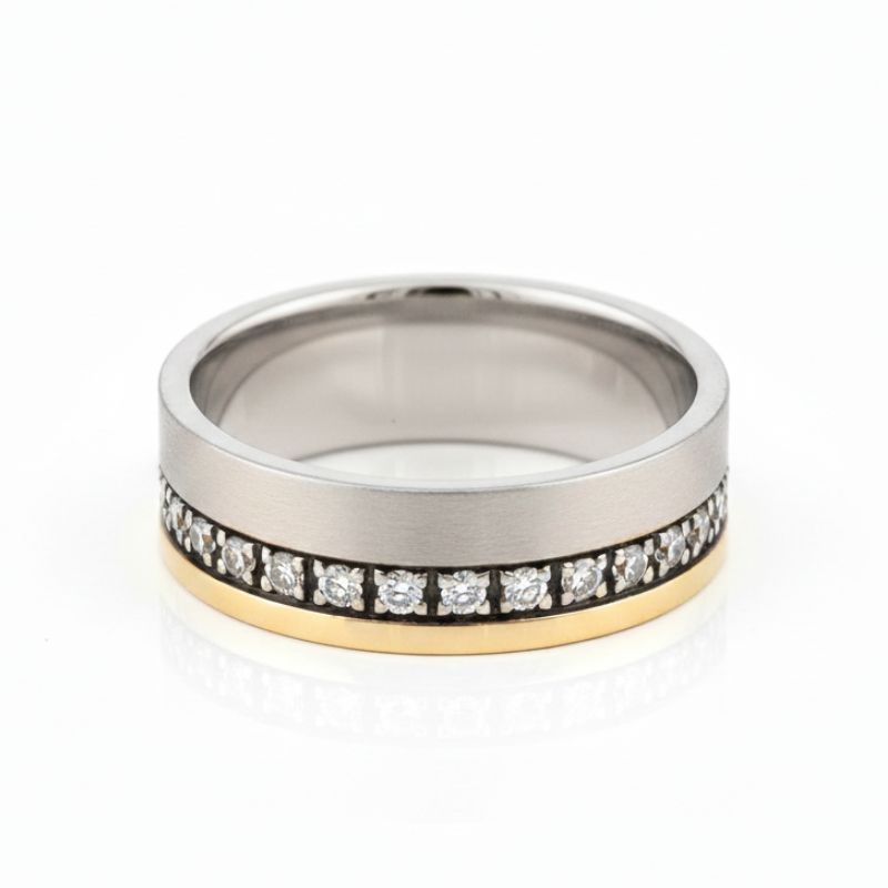 Aliança em ouro e prata com zircónias. Rotativa ou fixa. Tenho os brincos de conjunto