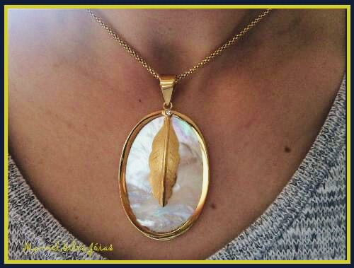 Colar em prata dourada ou prateada com madrepérola.