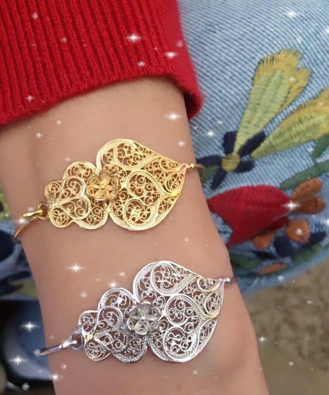 Pulseira em prata 925 dourada ou prateada com coração de Viana em filigrana. Tenho a medalha e os brincos de conjunto