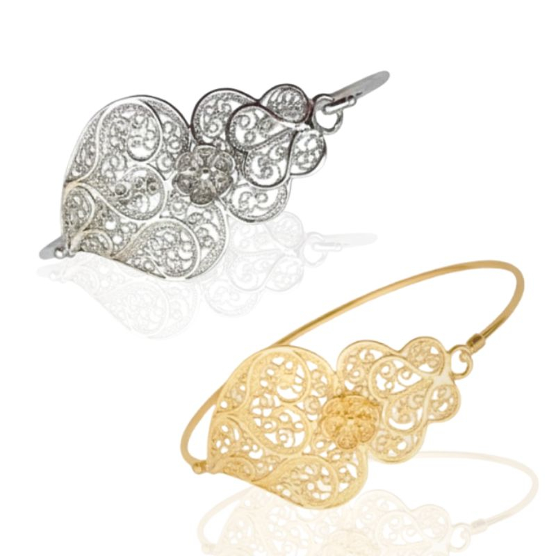 PULSEIRA MS JÓIAS Filigrana Prata com coração de Viana