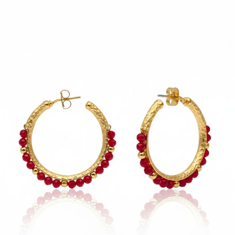Argolas em prata dourada ou prateada com pedras coral. Tenho com pérolas.