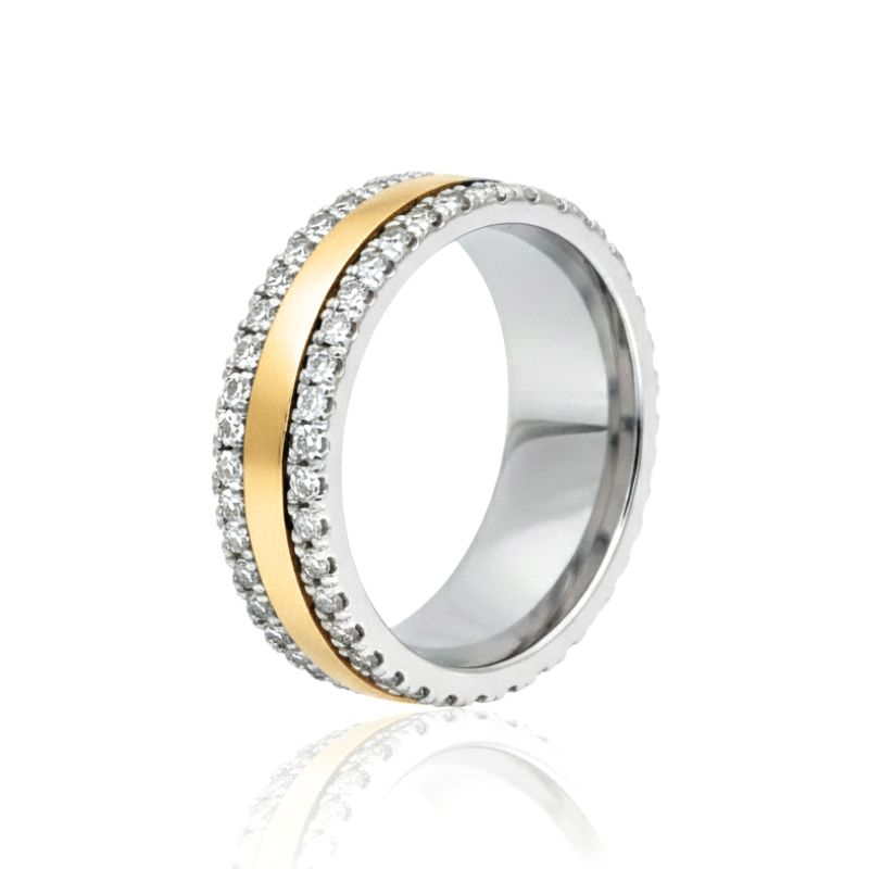 Aliança em ouro e prata com zircónias.