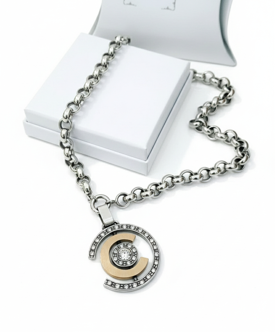 Colar em ouro e prata com zircónias. Cordão 119 euros. Medalha 189 euros.
