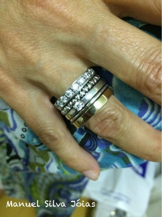 Aliança em ouro e prata com zircónias. Tenho os brincos de conjunto ref. MSJ 188