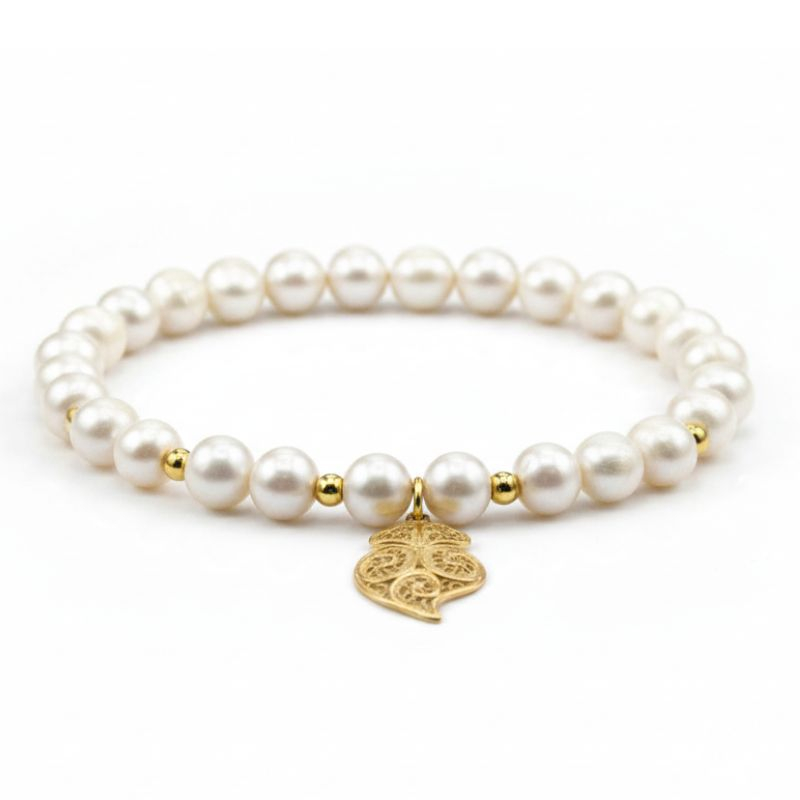 Pulseira de pérolas com coração de Viana em filigrana em prata dourada ou prateada. Tenho os brincos, o fio e o anel de conjunto.