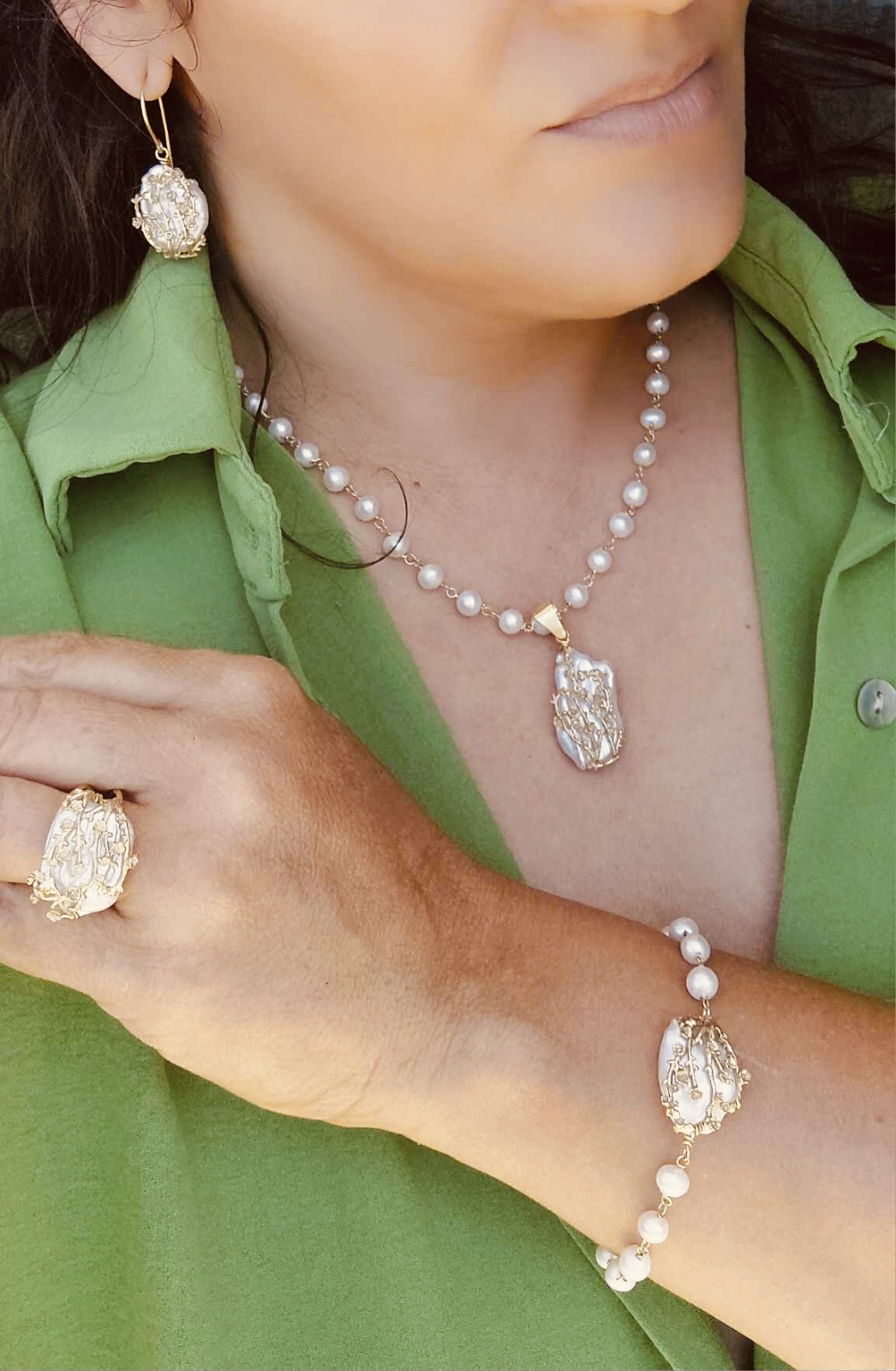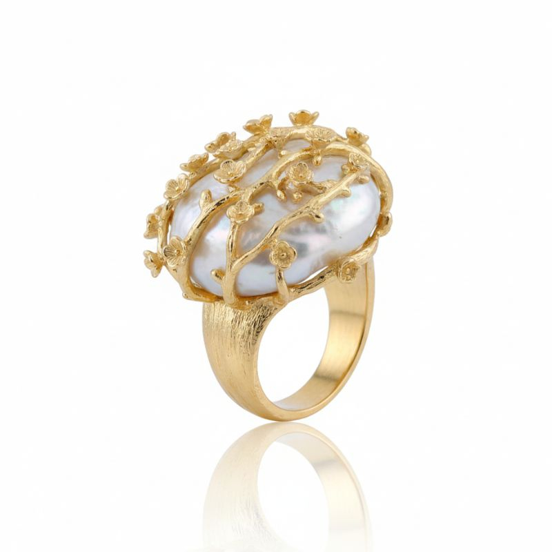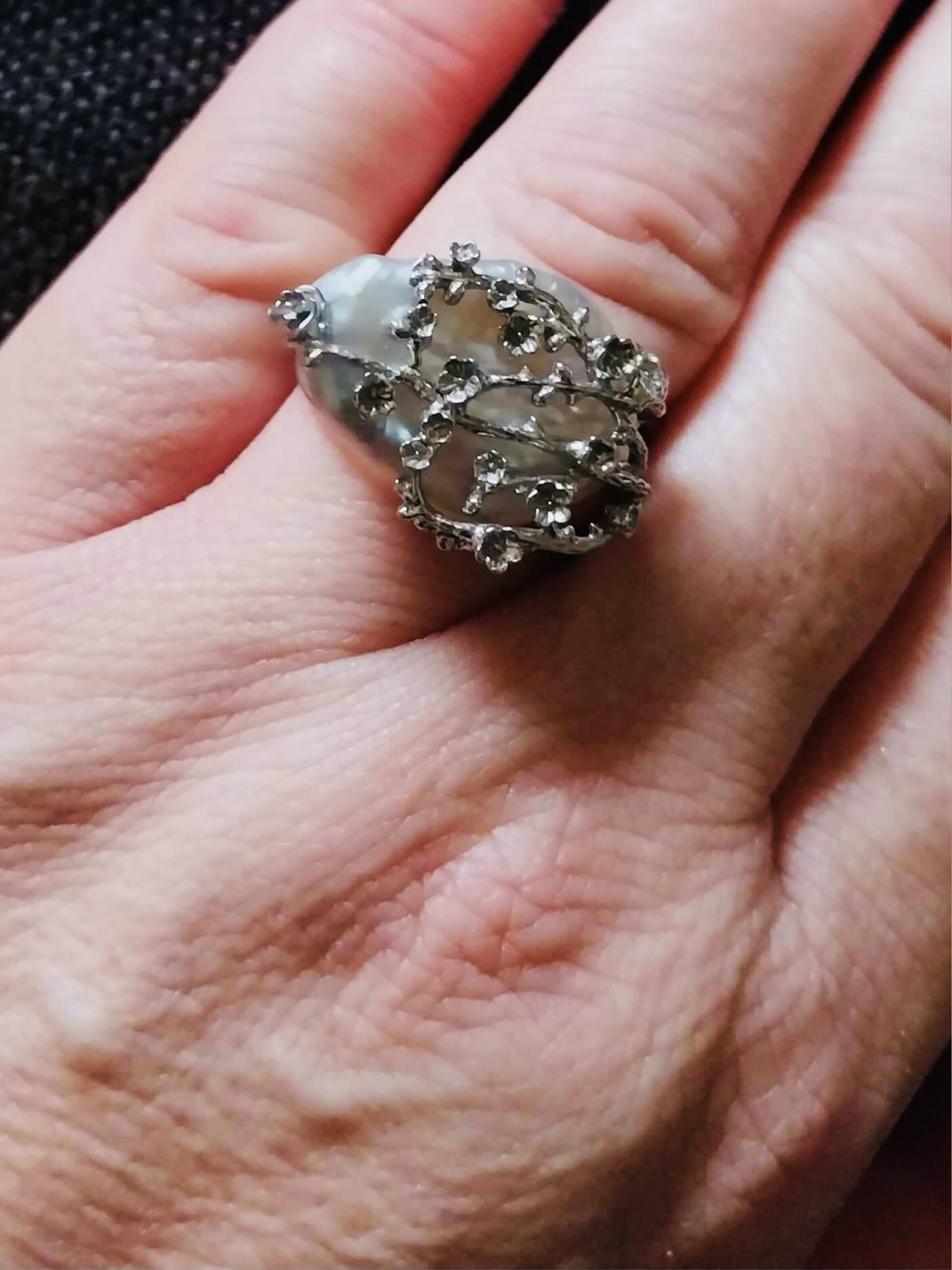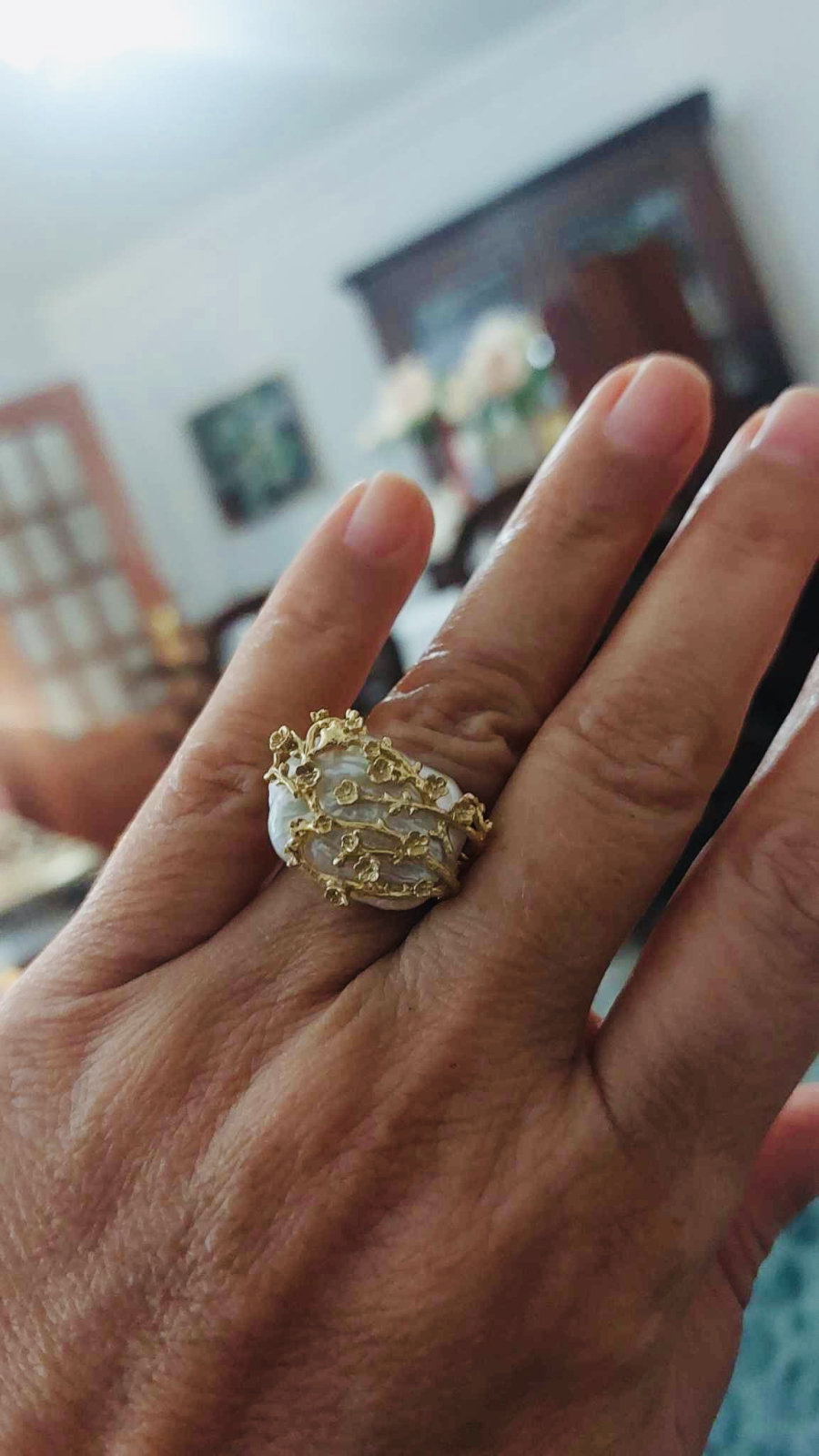 Anel com madrepérola em prata dourada ou prateada. Tenho o conjunto completo