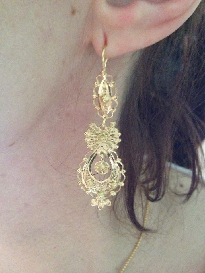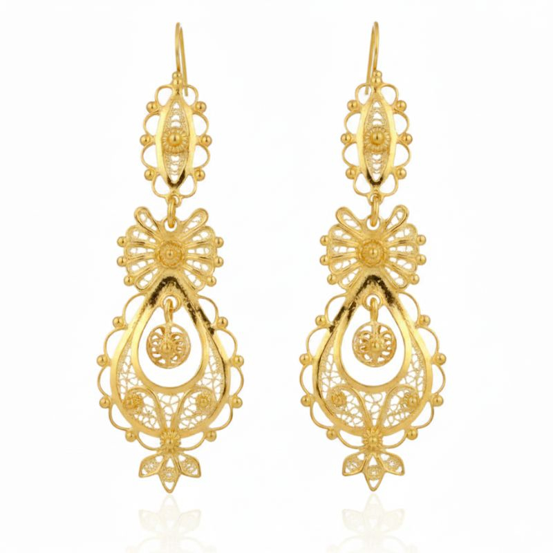 Brincos de filigrana em prata dourada ou prateada.