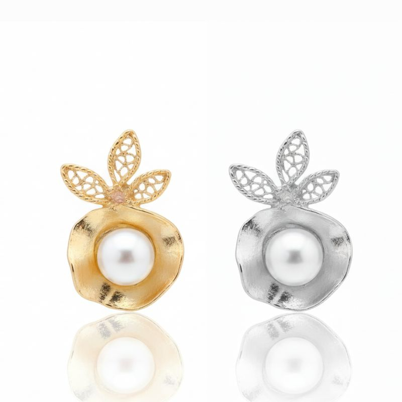 Brincos de filigrana com pérolas em prata dourada ou prateada