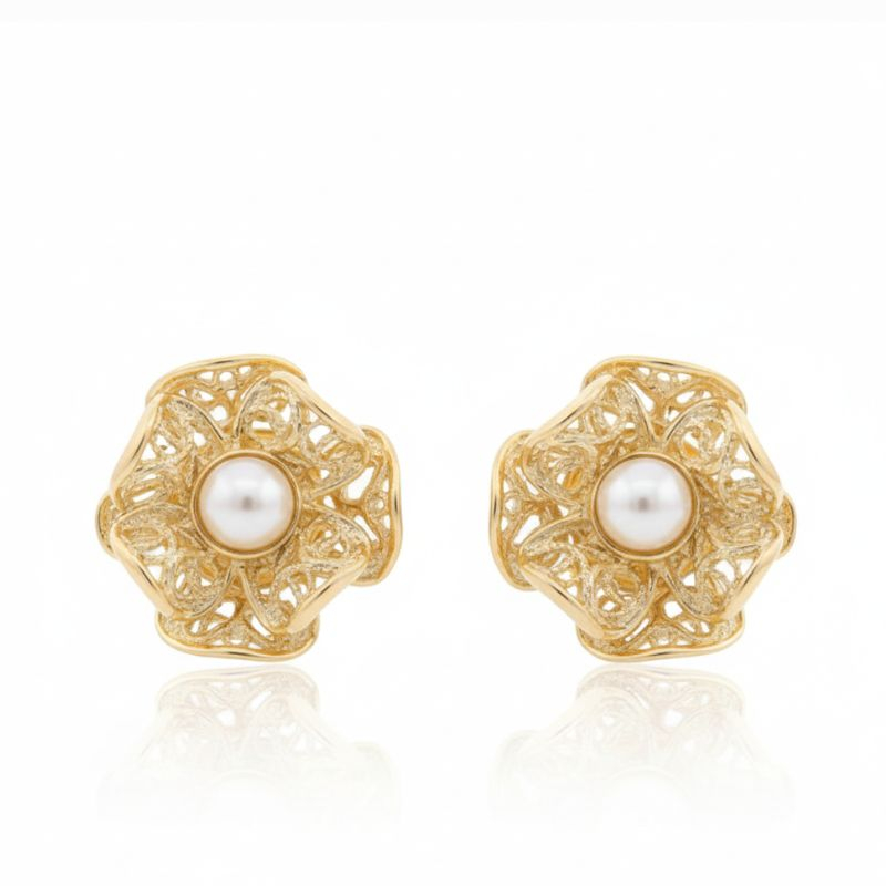 Brincos de filigrana em prata dourada ou prateada com pérolas.