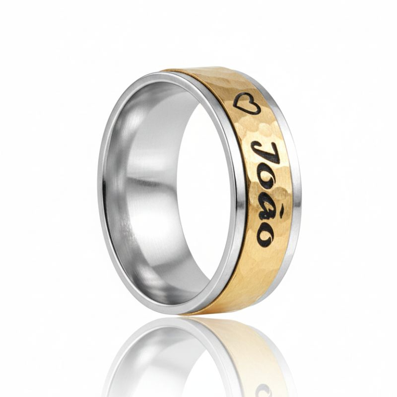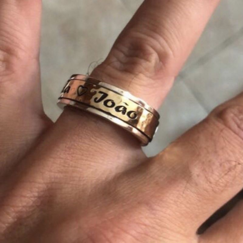 Aliança em ouro e prata personalizada.