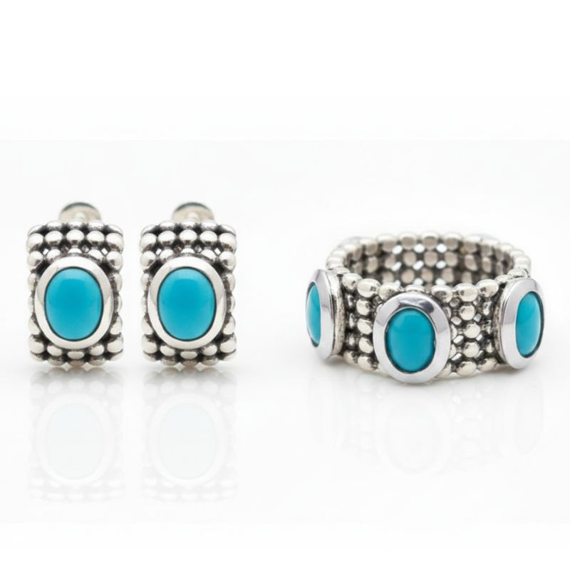 CONJUNTO MS JÓIAS Anel e brincos em Ouro e Prata