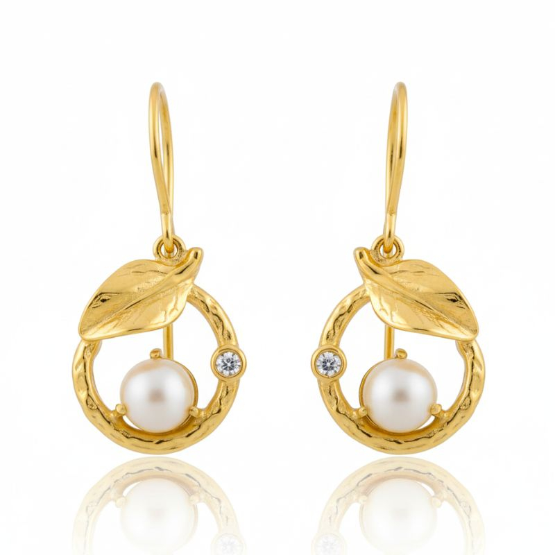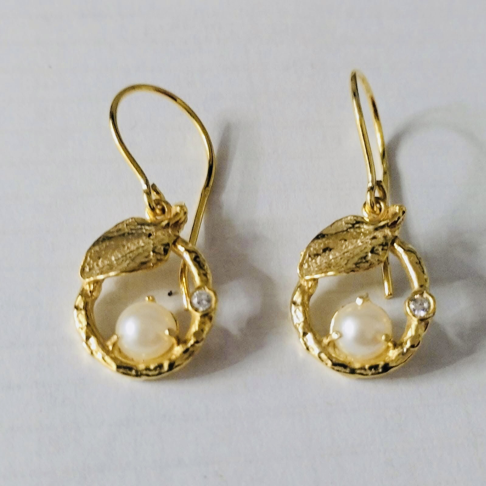 Brincos com pérola e zircónia em prata dourada ou prateada.