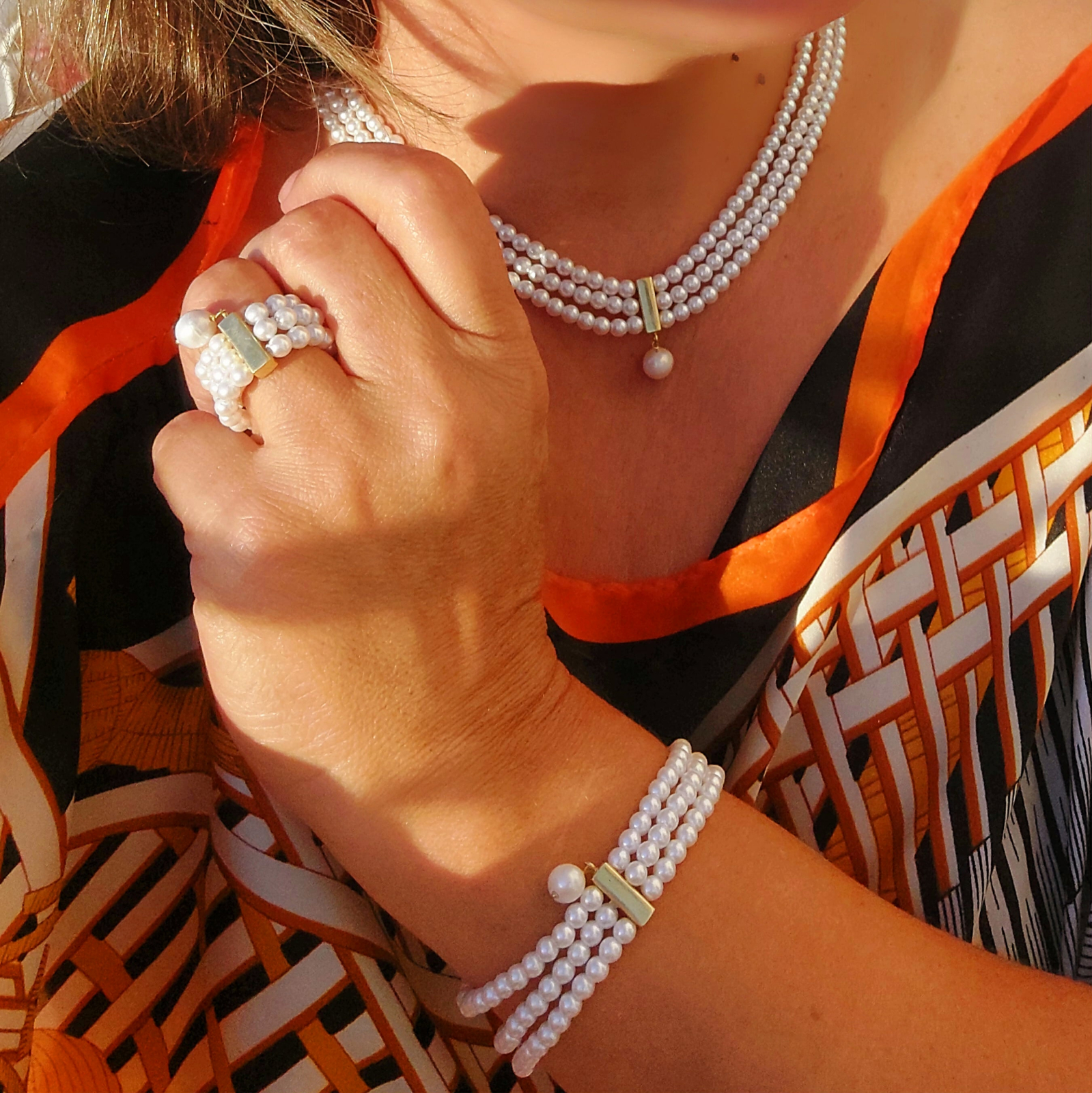 CONJUNTO DE PÉROLAS EM PRATA DOURADA OU PRATEADA