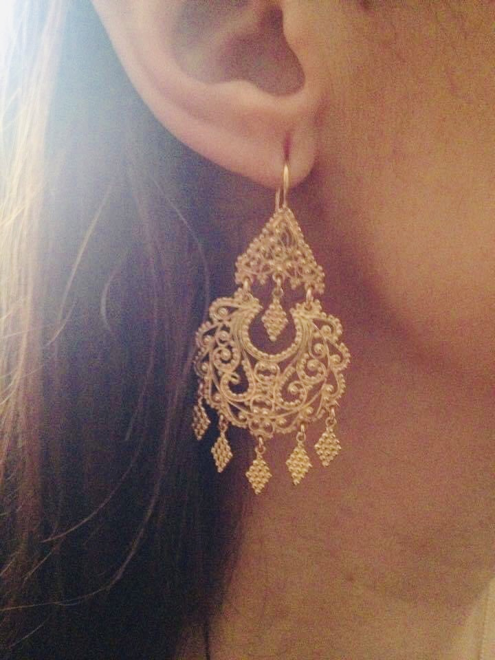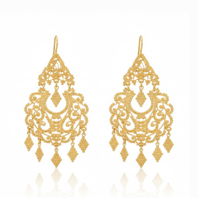 Brincos de filigrana em prata dourada ou prateada.