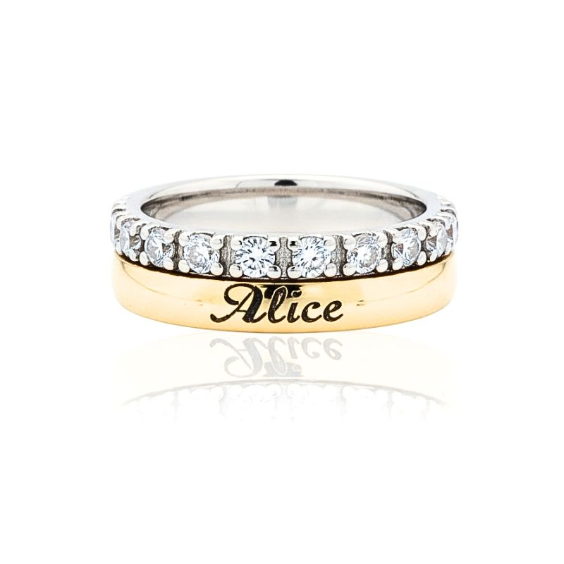 Aliança em ouro e prata personalizada. Gravações exteriores e interiores incluídas. Caso pretenda gravação descreva a mesma no campo de Observações da encomenda.