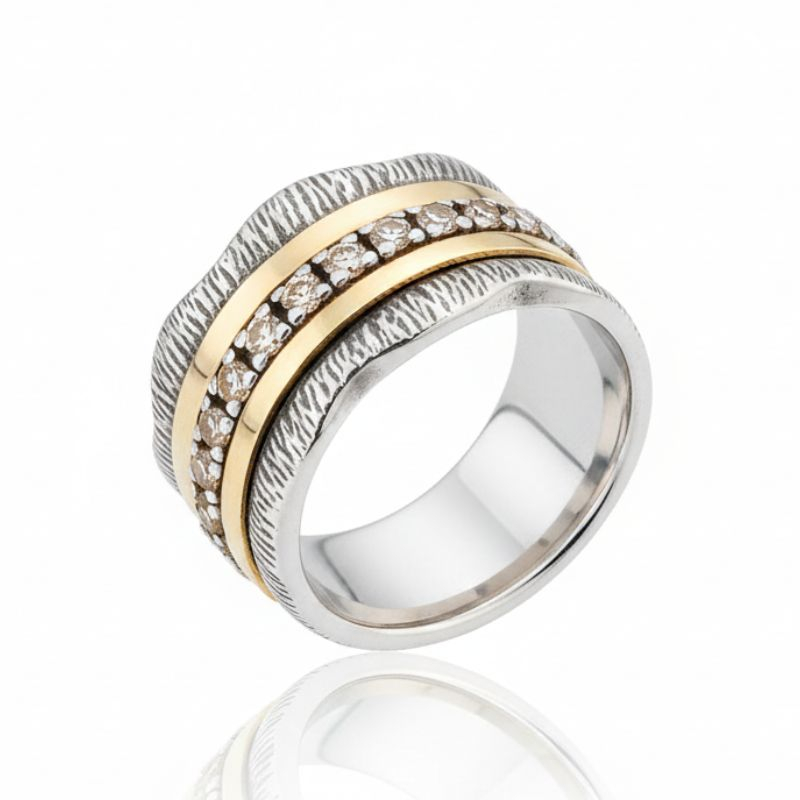 Aliança em prata e ouro com zircónias. Tenho os brincos de conjunto.